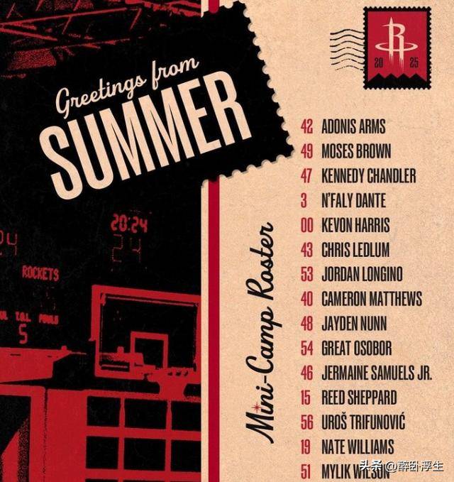 火箭夏联名单:探花谢泼德领衔广东水货外援阿姆斯有望战杨瀚森