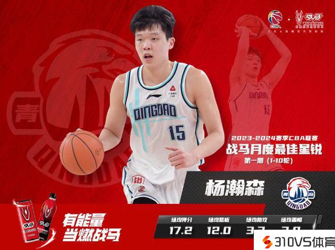 CBA官方在公告当中写道:【CBA联赛“战马月度最佳星锐球员”——杨瀚森】祝贺青岛男篮球员杨瀚森荣膺2023-2024赛季CBA联赛第一期“战马月度最佳星锐球员”!