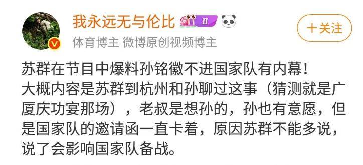 孙铭徽无缘国家队原因曝光,苏群曝出内幕,球迷错怪郭士强了!