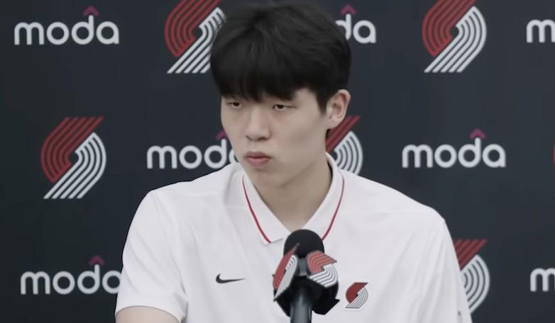 杨瀚森在开拓者亮相之后,出席了新闻发布会。