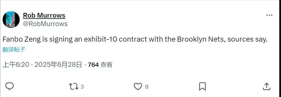 值得一提的是, 今年参加NBA夏季联赛的中国球员,除了杨瀚森,还有曾凡博。今天早些时候,篮网官方发布,他们跟曾凡博签约了一份EXHIBIT10合同,这就意味着,曾凡博将有希望跟杨瀚森在夏季联赛完成中国德比。不过曾凡博因为在今年CBA季后赛严重受伤,目前伤情恢复情况还并不清楚,此前媒体报道他在德国疗伤,还未痊愈,所以半个月后,赌城夏季联赛他到底能不能出场,还是未知数。