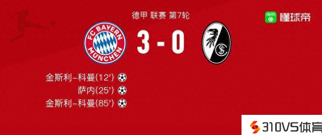 拜仁vs弗赖堡球员评分:金斯利-科曼9.4分,舒波-莫廷6.0分
