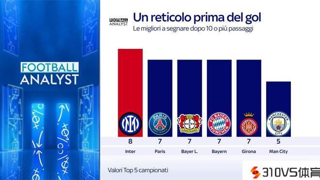 五大联赛10次或以上传球后进球数排行:国米全欧第1,米兰0球