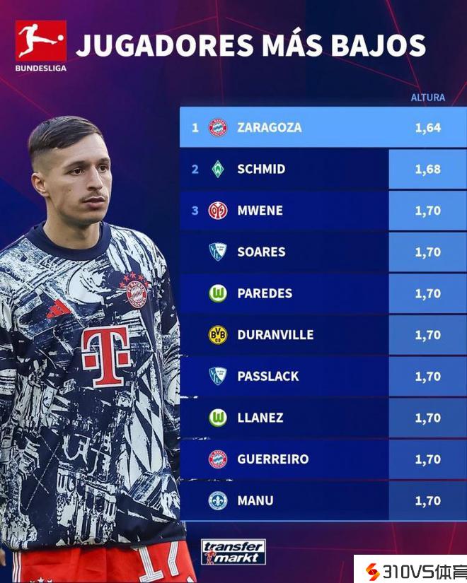 1米64,萨拉戈萨加盟拜仁后成为目前德甲身高最矮的球员