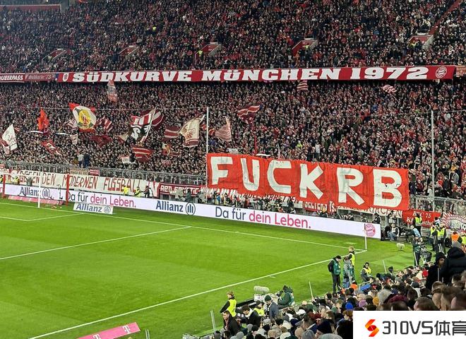 德甲第23轮,拜仁主场对阵莱比锡的竞赛正在停止。竞赛中,看台上的拜仁球迷拉出具有寻衅意味的横幅“FxxkRB”,表达对红牛集团的支持。