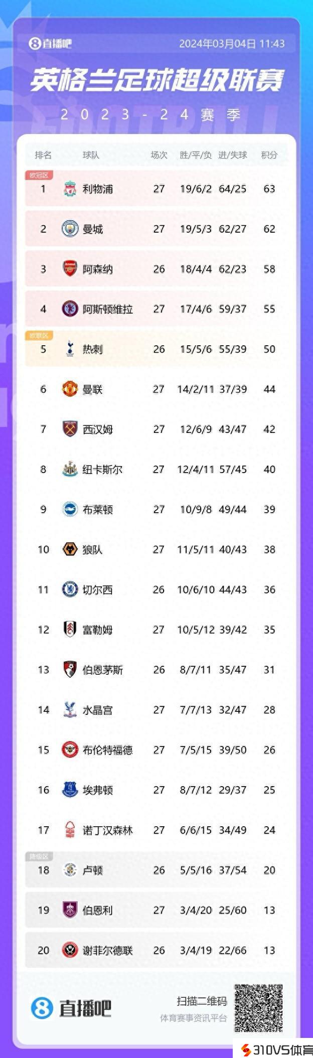 悬念还看英超五大联赛榜首分差:英超1分 西甲7分 德甲10分