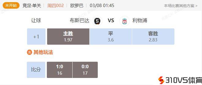 竞足 周四002欧罗巴布斯巴达VS利物浦