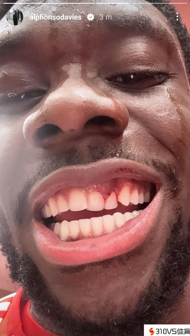 记者:阿方索-戴维斯在对立中被撞掉两颗门牙