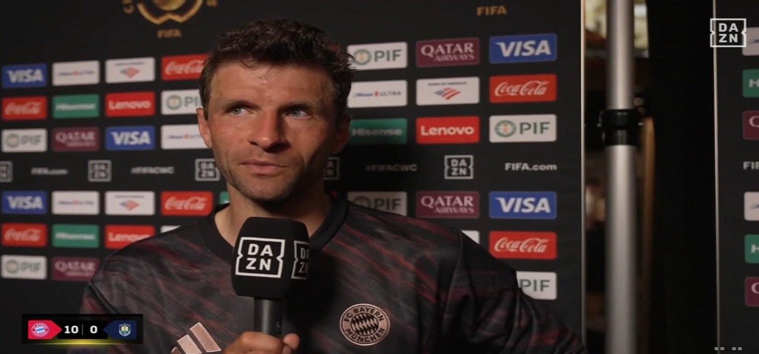 北京时间6月16日,拜仁在2025年世俱杯小组赛首轮中10-0大胜奥克兰城,赛后,拜仁球员穆勒接受了DAZN的采访。