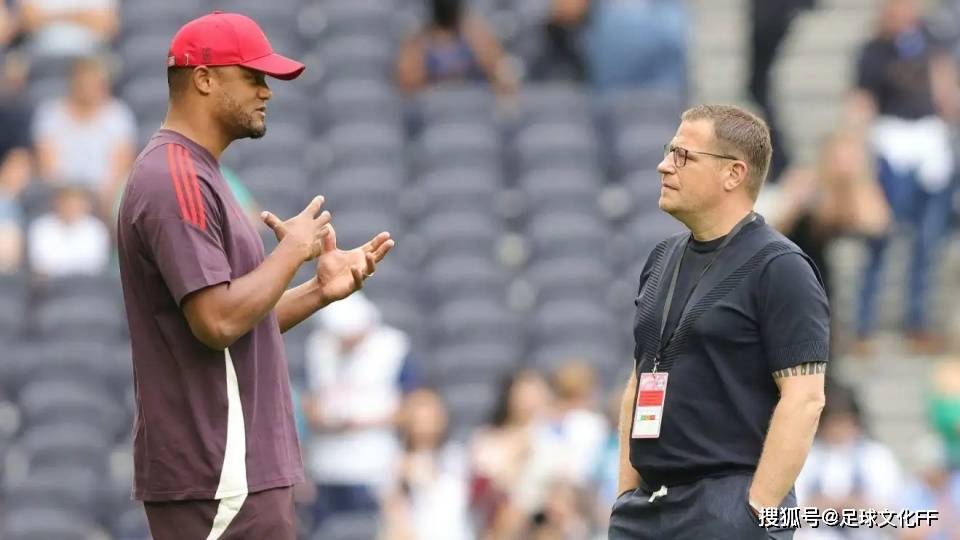 拜仁慕尼黑主帅文森特·孔帕尼正在与足球总监马克斯·埃伯尔交谈。