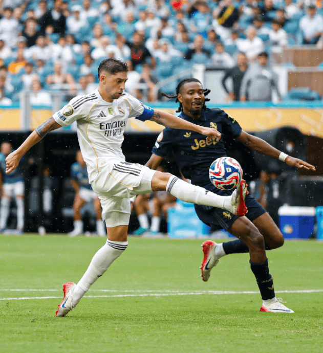 此外,阿诺德加盟皇马后,本场比赛迎来高光时刻。他在右路的表现十分活跃,不仅在防守端积极参与,多次成功抢断和拦截,阻止了尤文的反击。在进攻端,他的传球能力得到充分展现,尤其是为贡萨洛送出的那记精准传中,堪称助攻典范。这是阿诺德皇马生涯的首个助攻,也显示出他逐渐融入球队战术体系,成为皇马右路进攻的关键人物。他的存在丰富了皇马的进攻手段,通过精准的长传和内切后的短传渗透,不断给尤文的防线制造麻烦。