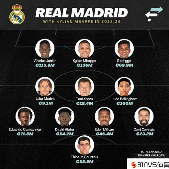 欧洲哆嗦吧!皇马下赛季首发预测:姆巴佩中锋,贝林克罗斯中场