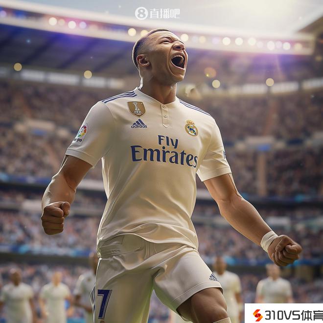 AI作画 姆巴佩身穿皇马7号,在伯纳乌庆贺进球的画面是这样的