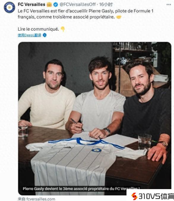 据《队报》报道,F1车队Alpine车手加斯利决议收买法丙球队凡尔赛的股份。加斯利是巴黎圣日耳曼球迷,热爱足球的他决议投资于自己所深爱的运动,他和欧尚帝国的承袭人、现任凡尔赛主席将共同成为俱乐部股东。
