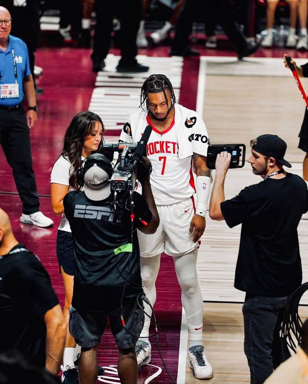 火箭不缺有天赋的年轻球员,白魔离队只是时间问题。2023年选秀大会,奇才看中了惠特摩尔,但火箭在20顺位将其摘走。惠特摩尔出生于2004年7月8日,两天之后才满21周岁。他身高1米98,臂展2米05,助跑弹跳1米03。
