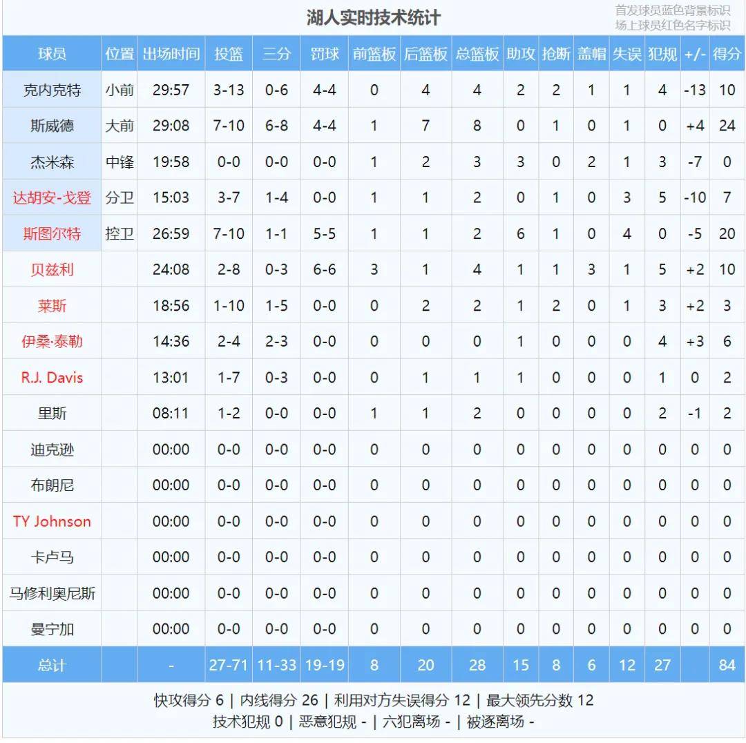 湖人今年选中的36号秀蒂耶罗,因伤缺席夏季联赛。湖人本场表现最好的是科尔-斯威德,投篮10中7,砍下24分8篮板。库里今天来到场边观战,勇士的杰克逊-罗和大莫布利各砍下13分,52号秀图希和56号秀理查德都没出战。