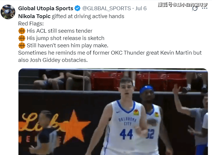 7失误后13中2还被夸?美媒:雷霆或又选球星托皮奇伤停346天闪光