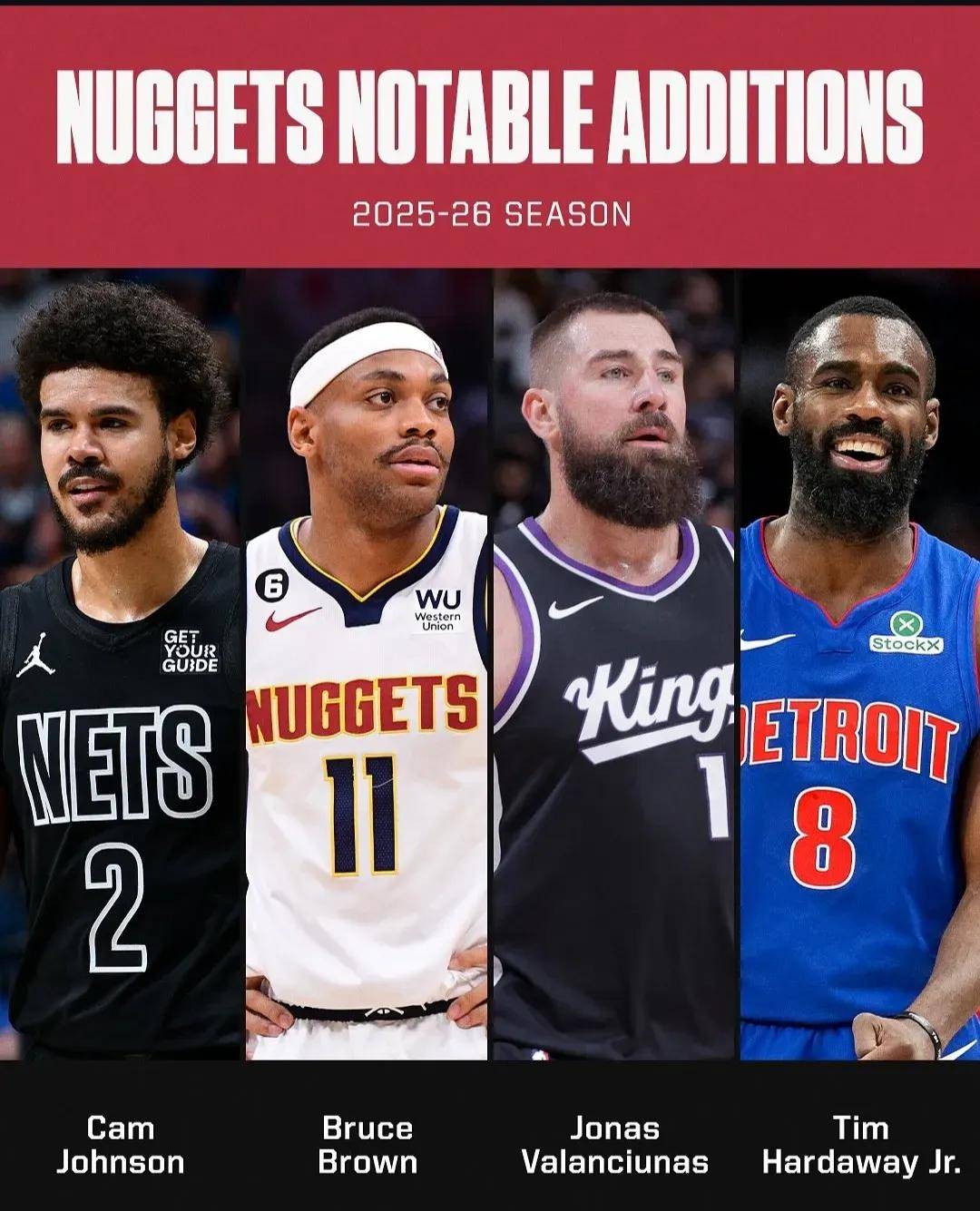 从2022年夏天开始,掘金连续三个休赛期签约小乔丹,上赛季小乔丹场均只有3.7分5.1篮板0.5盖帽。今年夏天,掘金用小波特换来卡梅伦-约翰逊,又用萨里奇换来大瓦兰,底薪合同签约布鲁斯-布朗和小哈达威,重新回到了争冠行列。