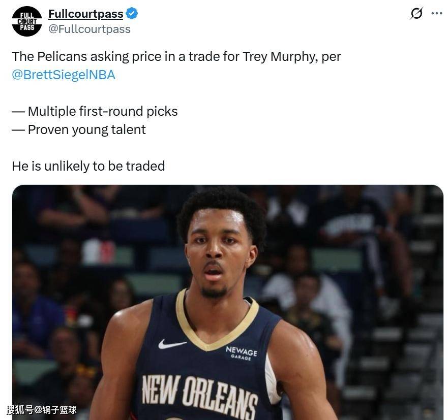 只不过,墨菲的交易要价较高,在休赛期之初鹈鹕队曾被曝出希望在墨菲交易中换回多枚首轮签外加具有前途的年轻球员。