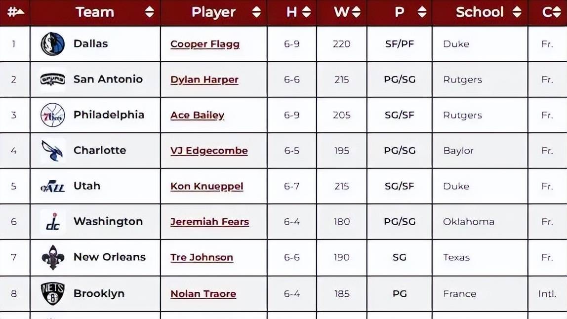 随着紧张而又充满悬念的抽签仪式缓缓落下帷幕,2025年的NBA选秀大会成为了备受瞩目的焦点。这场汇聚了众多篮球新星与各支球队期待的盛事,正式确定将于6月25日和26日在纽约布鲁克林那座标志性的巴克莱中心盛大举行。截至目前,外界对于选秀顺位的预测和讨论就从未停止。通过多次专业且细致的选秀模拟,我们可以清晰地看到,前三顺位的热门人选似乎已经逐渐明朗,弗拉格、哈勃和贝利这三位年轻球员始终牢牢占据着领先的位置。