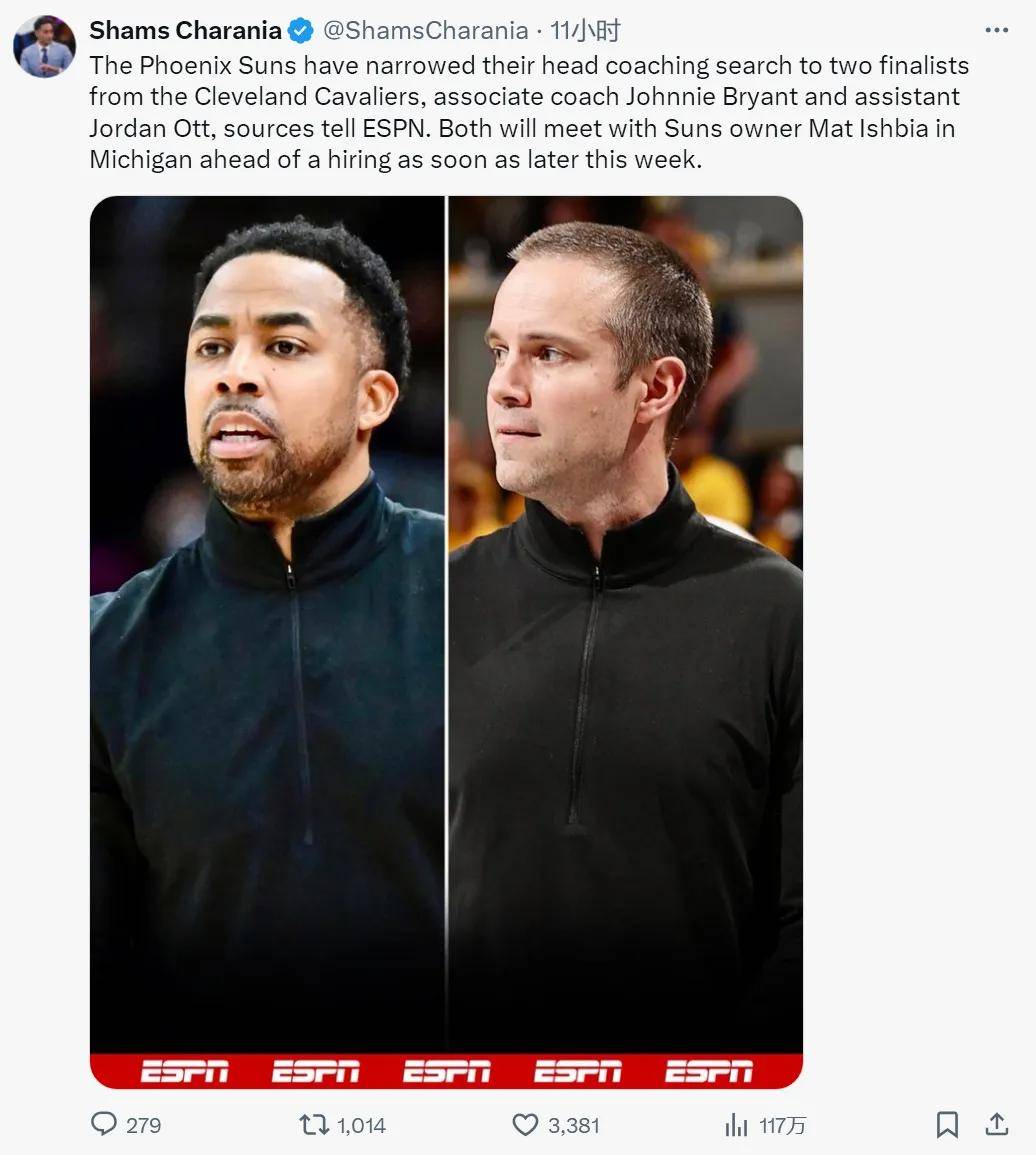一组很尴尬的数据对比:自2019年离开勇士之后,最近6年的时间,杜兰特经历了6任主教练,只赢下2轮系列赛!太阳这次选帅,最终的两个候选人都是骑士助教:约翰尼-布莱恩特和乔丹-奥特。太阳老板并未征求杜兰特的意见!
