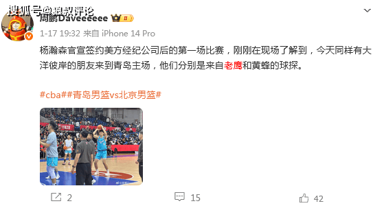 老鹰队的球探过去2个赛季多次抵达CBA现场观赛,若是正常来说,一些不需要内线的球队,基本上不会反复抵达中国考察亚洲内线球员,黄蜂的球探也比较类似的情况,就算是最终不会在比较靠前首轮签出手,至少可以证明杨瀚森是他们反复考虑的范围之内。