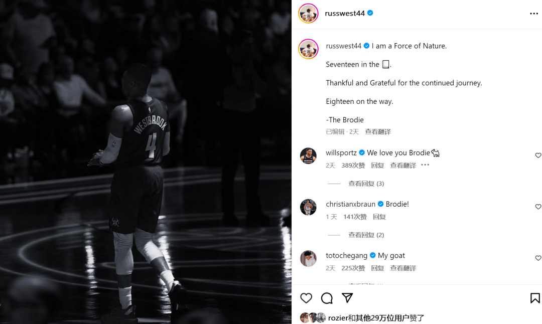 朋友们,今早刷到威少那条动态了吗?
