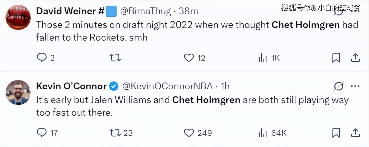 NBA记者凯文奥康纳:霍姆格伦与杰威此役进入状态很快了。