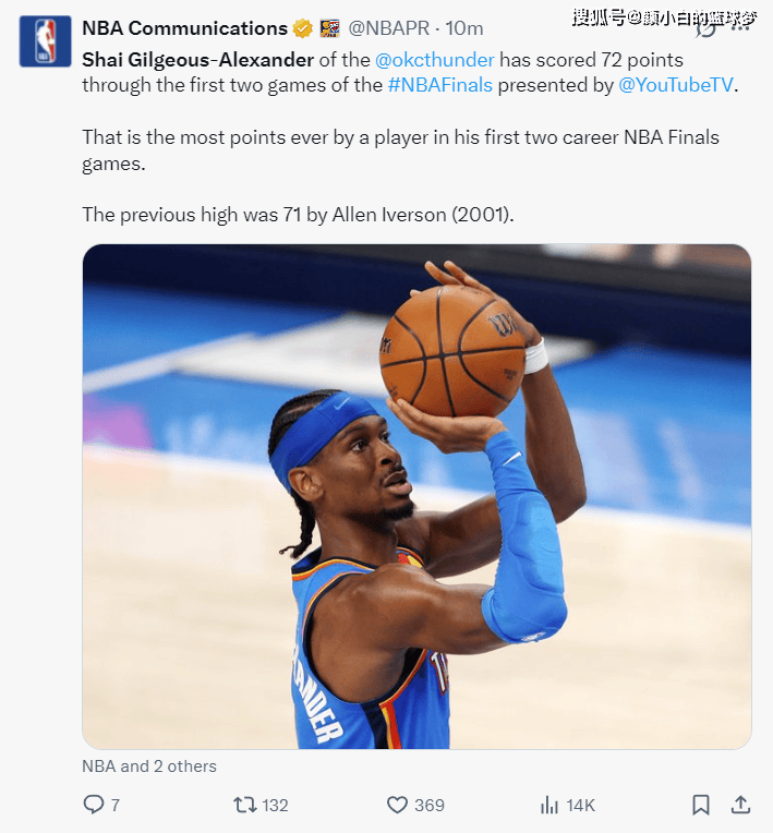 北京时间6月9日,总决赛G2,雷霆以123-107击败步行者,大比分扳成1-1。这场比赛SGA依旧是雷霆的基本盘,他个人的发挥无懈可击,就算没有刻意去造犯规他也是场上最强的球员,加之此役雷霆多点开花SGA的进攻压力减小,SGA此役就连续创造多项纪录。