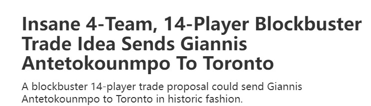 媒体曝4队14人疯狂交易提案!字母哥或以历史性的方式加盟猛龙队