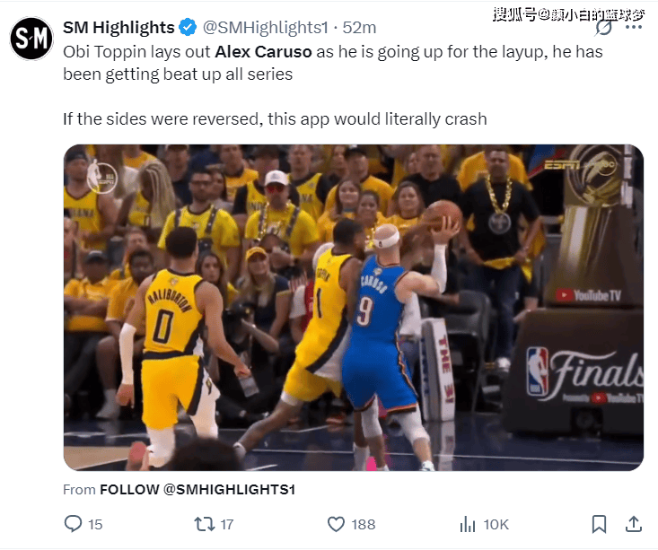 卡鲁索或许才是这支雷霆外线防守最出色的那个,雷霆能抢七越过掘金卡鲁索居功厥伟,他以1.96米的尺寸可以去防约基奇,这轮系列赛卡鲁索缠斗哈利伯顿也是连连抢断,第二节卡鲁索抢断一条龙反击还被托平一级恶意犯规,上半场卡鲁索已经11分4抢断。
