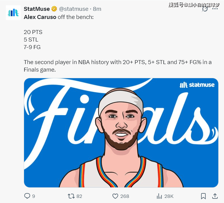 轰20+5断成历史首人!卡鲁索攻防一体成最佳引援美记:无名英雄