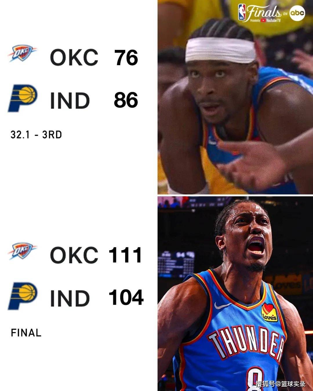 但是雷霆打得非常坚决和顽强,就是要往内线杀,最终他们也得到了回报,双方内线得分对比50-36、中距离得分对比18-10,再加上更准的罚球(雷霆38中34,步行者33中25),雷霆这才很“反时代”地追上并完成了逆转。