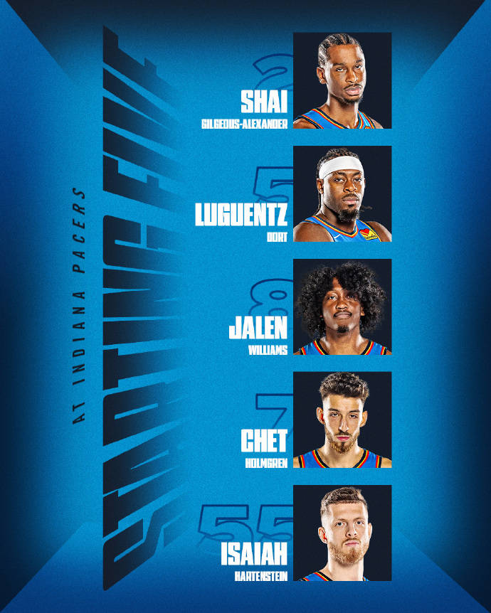 雷霆方面:亚历山大、多尔特、杰伦-威廉姆斯、霍姆格伦、哈腾