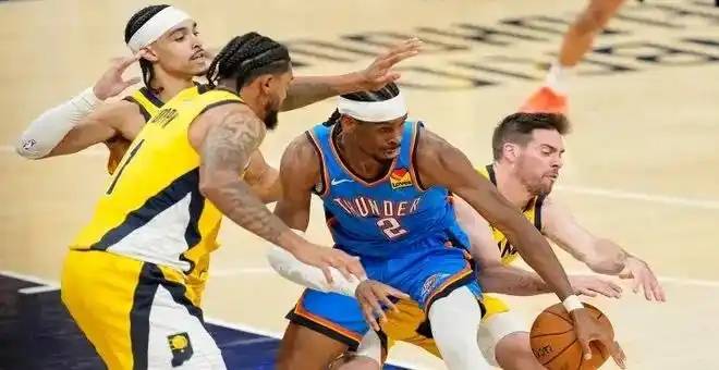 在这之前,雷霆队在总决赛里比分是3 - 2领先,以不小的优势拿到了冠军点。不过步行者队一点没退缩,这场比赛全队一起使劲,打出了气势。靠着精准的三分和不错的内线进攻,把比分反超,上半场结束时大幅度领先。下半场,步行者队接着保持优势,最后以108比91大胜雷霆队,把总比分扳成3比3平,系列赛被拖进了决胜第七场。
