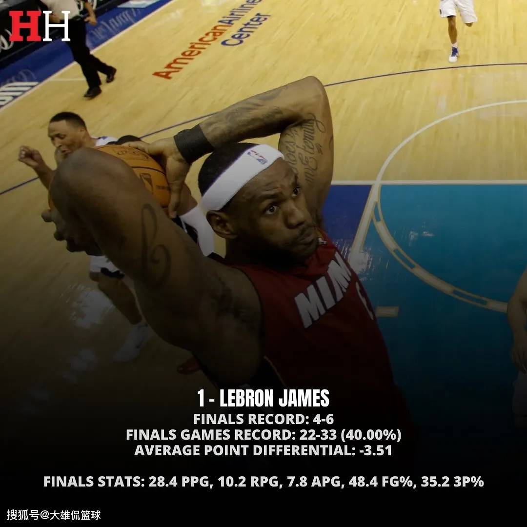 职业生涯总决赛失利次数最多的球员TOP1-10名,老詹第一
