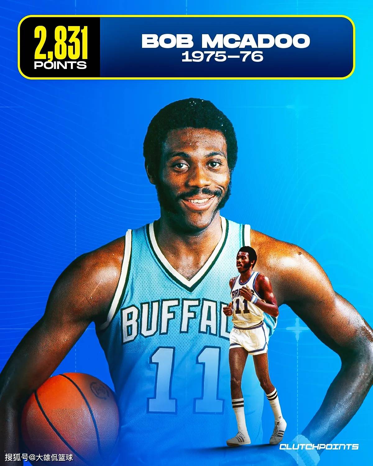 1974-75赛季,场均34.5分,一共拿到了2831分。当时,鲍勃麦卡杜效力于勇敢者队。他是一名出色的中锋,职业生涯场均22分。