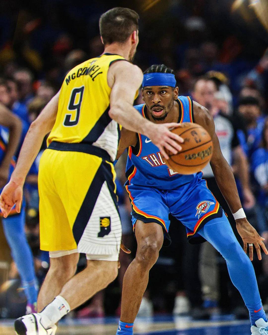 第三节打了5分钟,雷霆拉开到9分。步行者没有放弃,麦康奈尔站出来连砍12分,这样的步行者让人肃然起敬。缺少了哈利伯顿,步行者没有进攻发起点。再加上雷霆不断夹击持球人,提升防守抢断,步行者第三节出现7次失误。