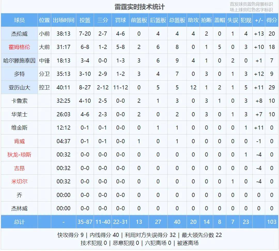 杰威上半场7中2仅得5分,第三节砍下9分,亚历山大单节也有6分3助攻进账。雷霆单节34比20净胜14分,三节打完,雷霆81-68领先13分,亚历山大已经砍下22+5+10。步行者前三节15次失误,雷霆仅4次失误,其中第三节0失误。