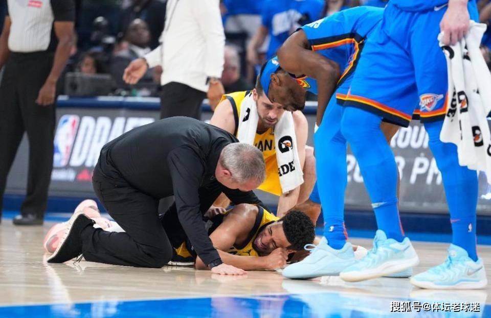 本场比赛,除了雷霆创造历史,也有着极具悲情的一面。步行者队核心哈利伯顿拖着受伤的右小腿,在俄城主场山呼海啸的声浪中,连续三记三分球,如精确制导般空心入网! 他张开双臂,迎接着属于客场英雄的短暂欢呼。但命运却在下一个回合露出了残酷的獠牙。一次看似平常的无对抗跑动中,哈利伯顿轰然倒地,痛苦地捂住右脚跟腱的位置。泪水瞬间涌出,淹没了方才的锐气与光芒。