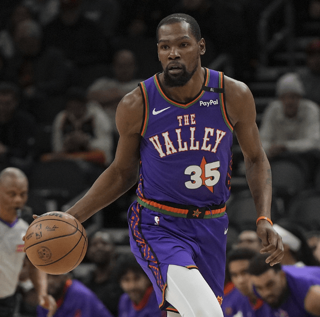 当然,你不能说杜兰特没有上进心,自从离开勇士之后,杜兰特在篮网、太阳也曾经想努力的证明过自己。但一项数据非常尴尬的是:杜兰特自2019年离开勇士后,三次被交易,就赢过两个系列赛。分别是2020-21赛季篮网在首轮击败凯尔特人;以及2022-23赛季太阳在首轮击败快船。这样的带队战绩从超巨的角度看,其实是拿不出手的。唯一的解释是:杜兰特被高估了。