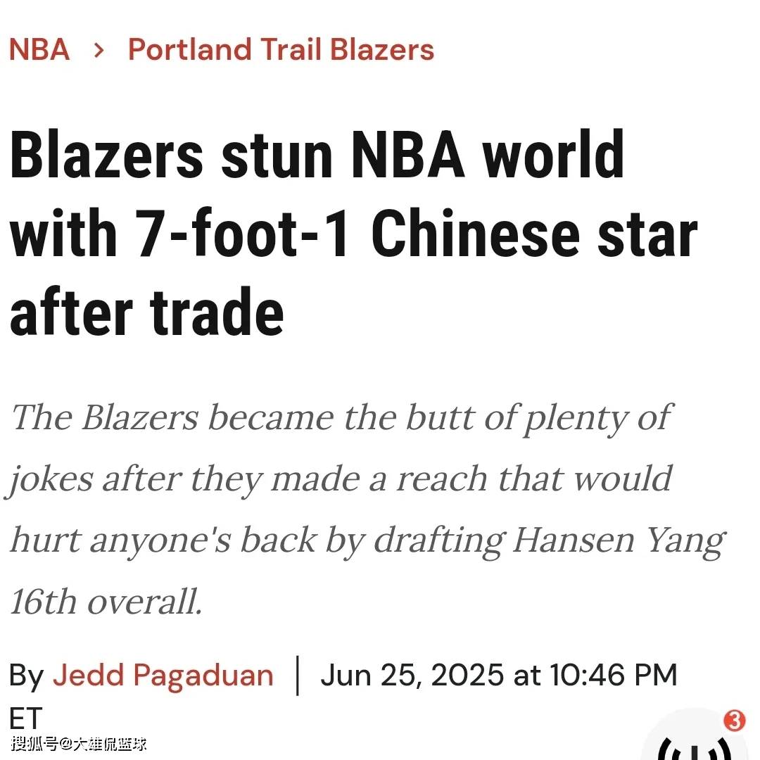现在,不少美国的球迷媒体,都在嘲讽波特兰开拓者的选择。认为他们用一个首轮第16顺位的选秀权,去选择用中国的运动员,是一个笑话。杨瀚森会让波特兰开拓者成为笑话吗?只能说这些球迷媒体太无知了。