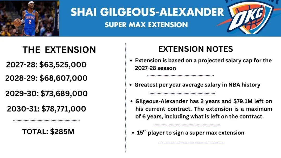 4年2.85亿!亚历山大正式续约!成为NBA历史最高年薪