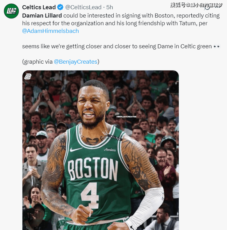 五小时之前,波士顿凯尔特人记者AdamHimmelsbach爆料,利拉德预计将跟绿凯签约,因为利拉德与塔图姆的私交甚笃,这两人目前都在恢复跟腱的伤情,两人的康复训练可以一同进行。