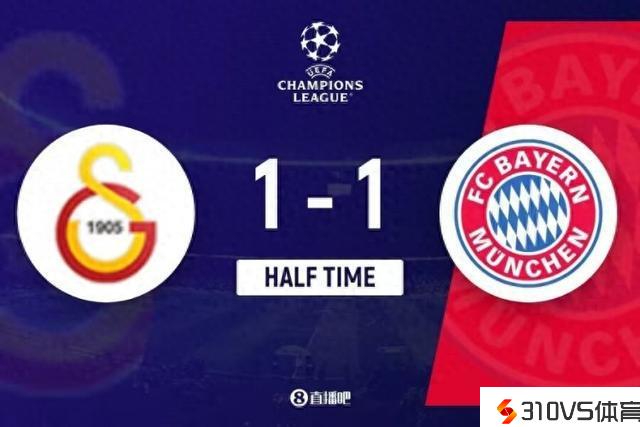 加拉塔萨雷1-1拜仁半场数据:射门16-3,得分时机4-1