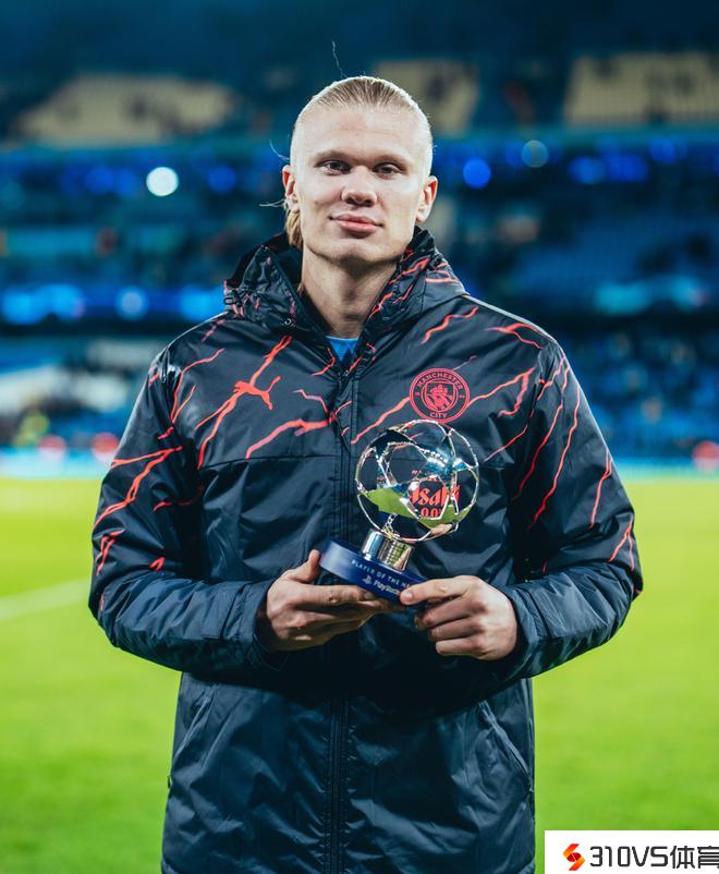 梅开二度,哈兰德中选欧冠全场最佳球员并支付奖杯