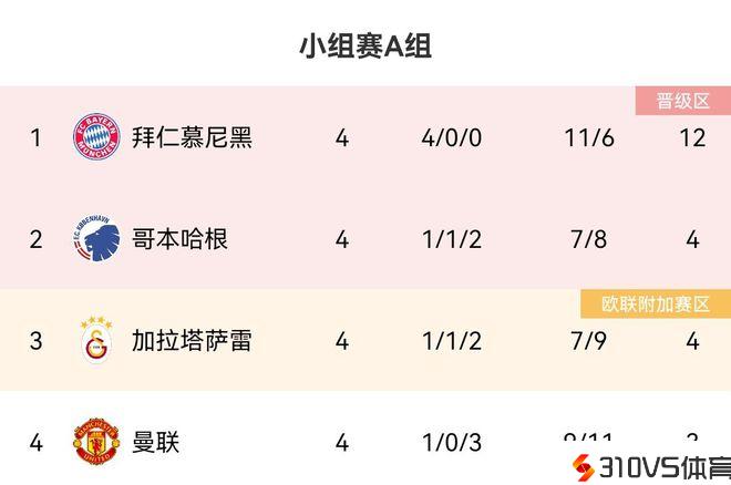 有人拖后腿?欧冠A组三队积分相加不及拜仁,三队净胜球皆为负