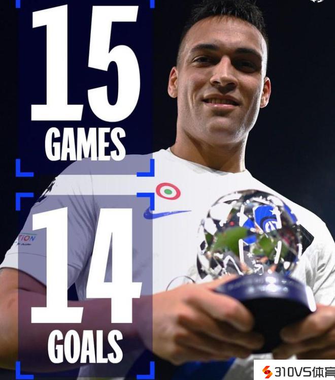 表现引人注目!欧冠官推晒劳塔罗团体海报:15场14球