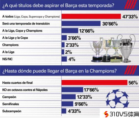 世体调查:巴萨球迷对球队本赛季在西甲和欧冠的前景感到失望
