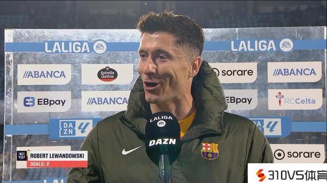 在本轮西甲联赛的一场竞赛中,巴萨客场2-1击败塞尔塔,赛后,在竞赛中梅开二度的巴萨前锋莱万多夫斯基接受了媒体的采访。